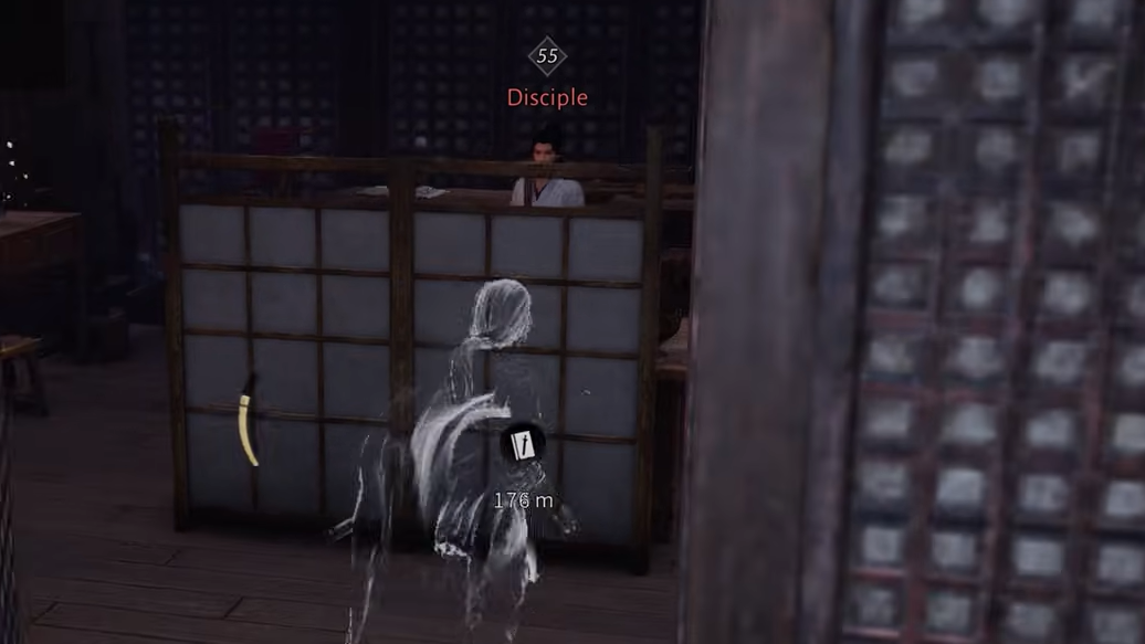 Step 4: Watch the patrol pattern of the guard posted by the staircase. When the guard turns away, quietly approach and use Touch of Death to eliminate them in a single strike, keeping the area quiet.