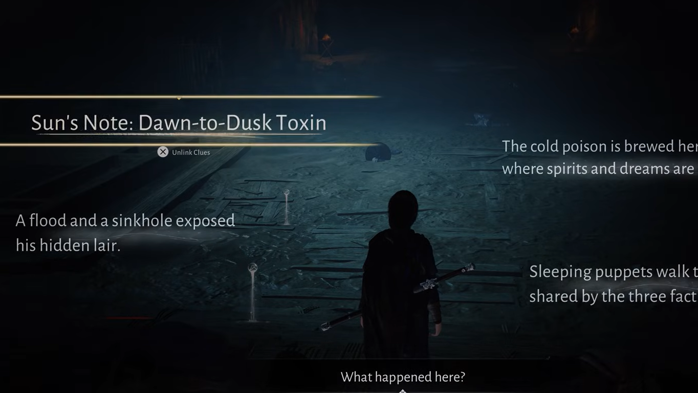 Step 2: Search the room around the mummy carefully and read Sun Buqi's Notes and the other documents placed on the nearby table. These texts explain how the Dawn-to-Dusk Toxin was created, how people were turned into Sleeping Puppets, and hint at the identity of the healer involved.