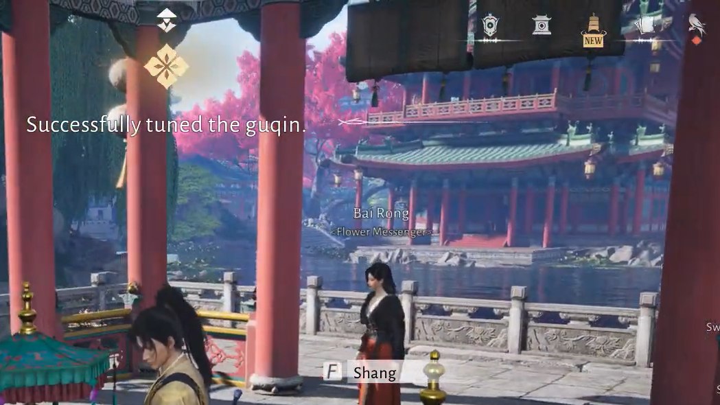 Step 1: Follow the “Shadows in Bloom” objective to the private area in Kaifeng, change into Master Jiang Yi’s outfit when prompted, and walk up to Bai Rong when she appears. Exhaust the dialogue until she asks you to demonstrate your skills and starts the tuning segment.