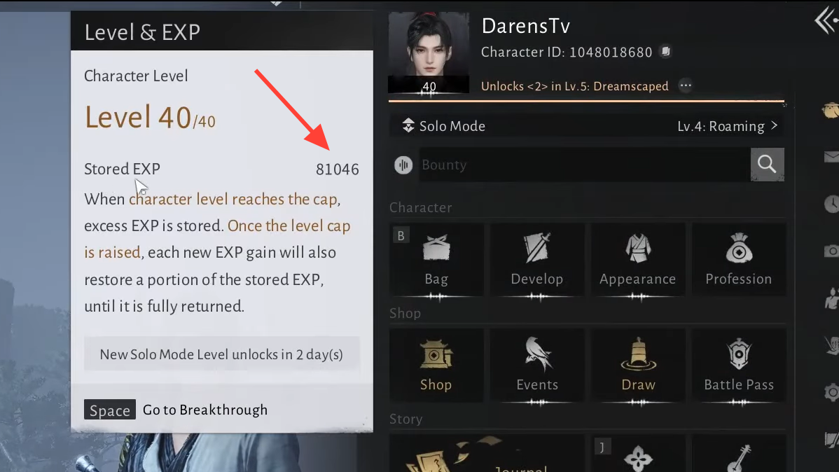 Where Winds Meet uses a time-gated leveling system built around periodic Breakthroughs that raise your character's level cap. If you keep playing after hitting one of those caps — completing quests, clearing bosses, exploring oddities — all the EXP you earn doesn't vanish. Instead, it converts into Stored EXP, a separate pool that pays out gradually once the cap is lifted. The mechanic is easy to miss and often misunderstood, so here's exactly how it behaves.