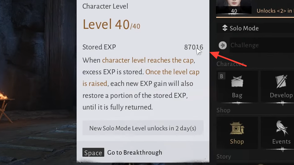 Because the payback is tied to new EXP gains, the more EXP-granting activities you do after a Breakthrough, the faster your stored pool drains. A few approaches help:
