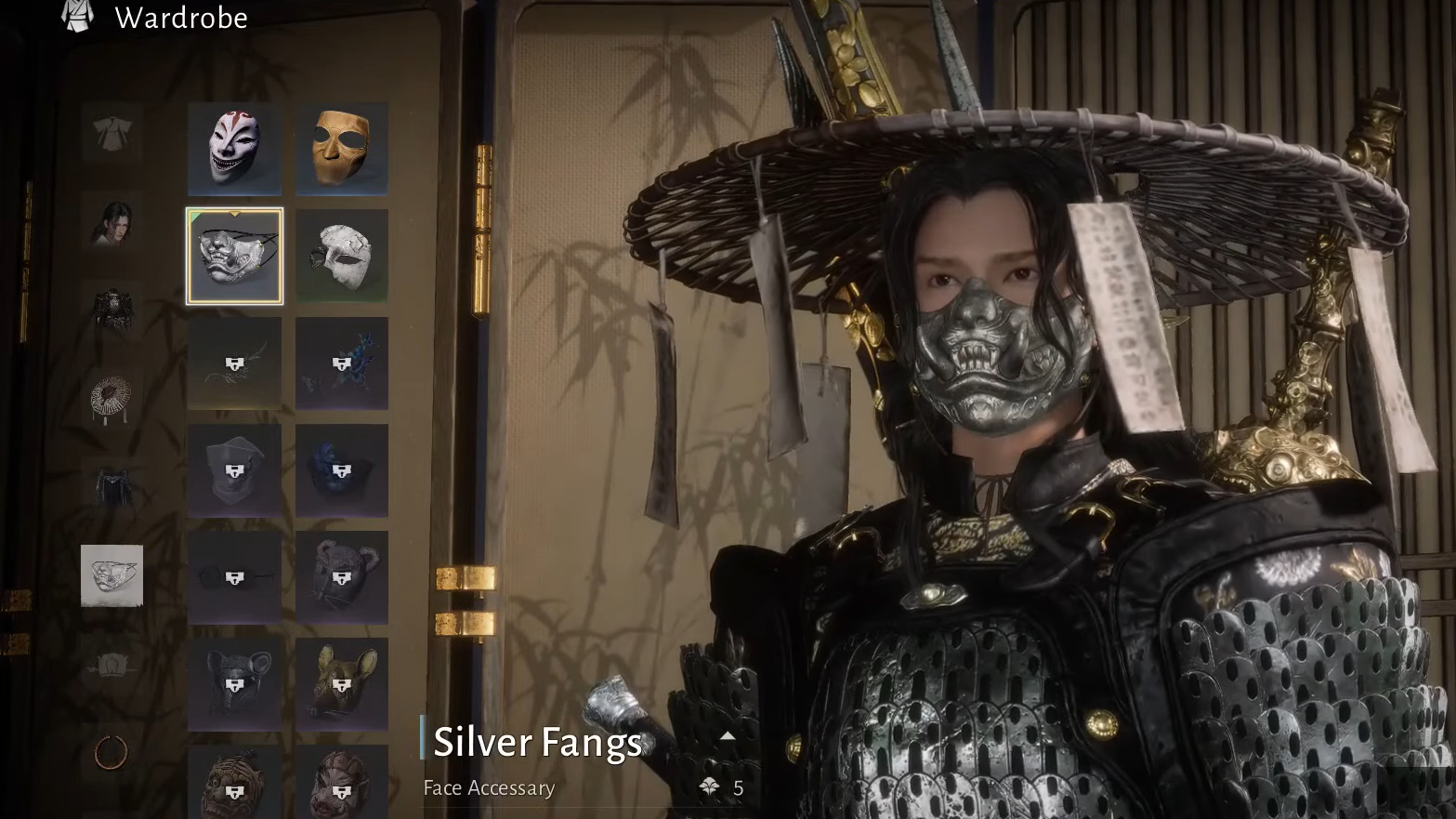 Step 4: Completing that interaction grants the Silver Fangs mask (often described as the Wolf Maiden’s half mask and visually compared to masks from Ghost of Tsushima). The mask is then available in your cosmetics or appearance options.