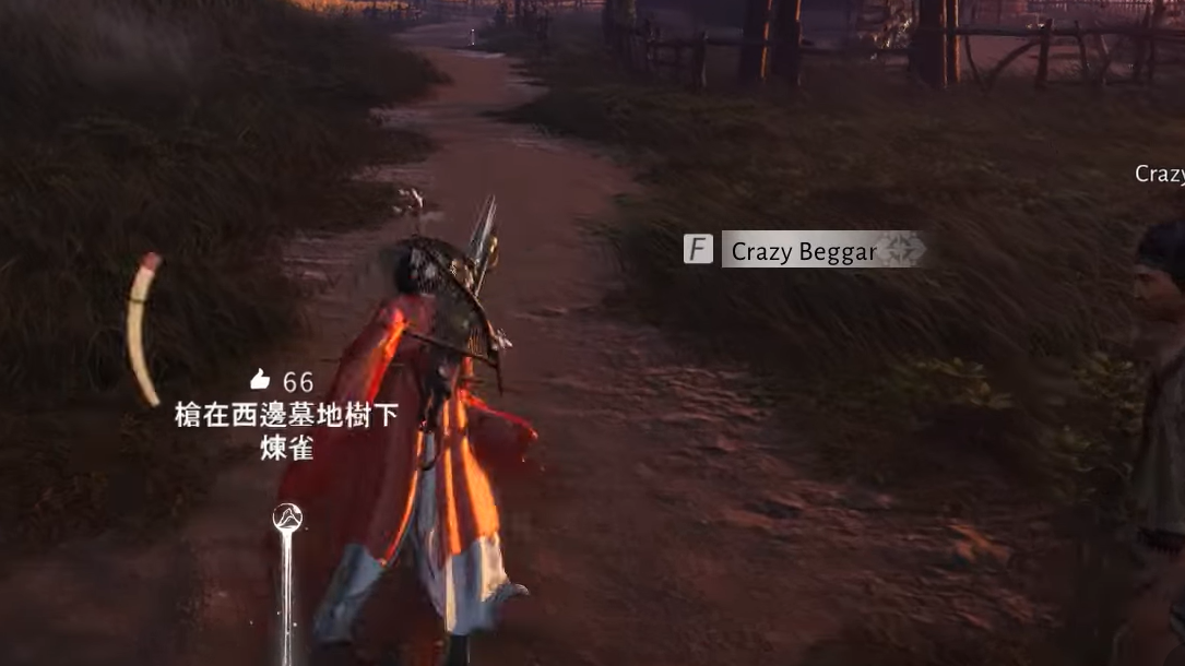 Step 1: Head to Harvestfall Village and look near the village center for an NPC labeled Crazy Beggar, standing on one leg. Talk to him. He explains that he wants to “fly back home” and asks you to retrieve his “gun”.