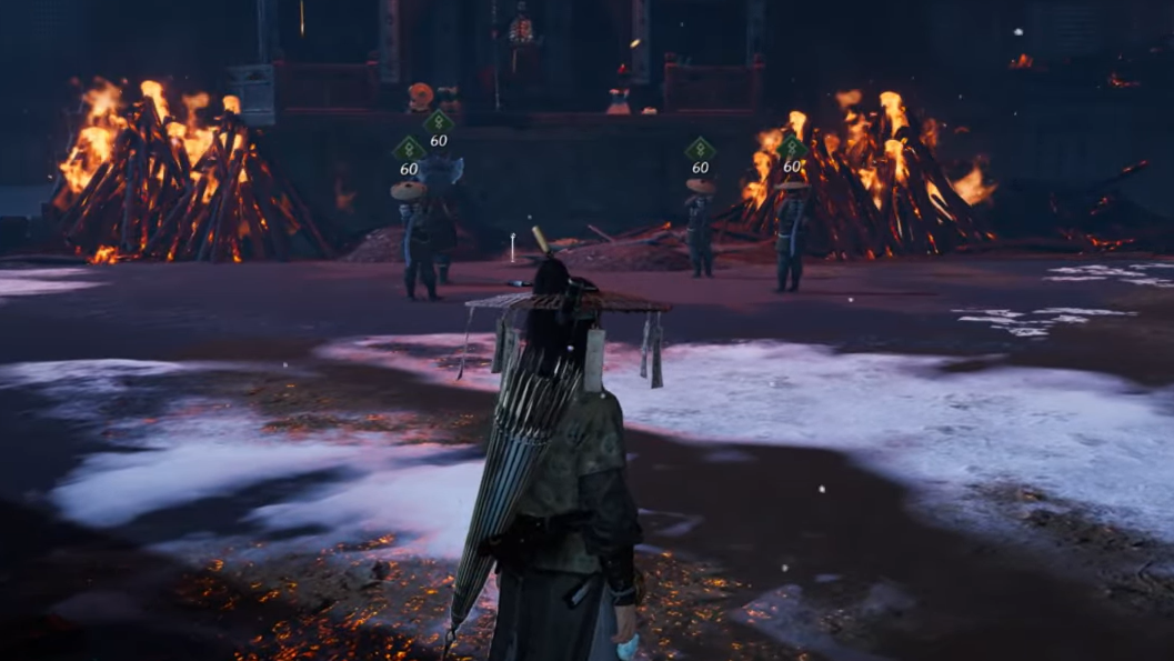 Step 4: When He Yuezhi falls, loot the bodies and follow the path up toward Zheng’s Main Residence, clearing a couple more enemy groups on the way. Watch for explosive barrels near enemies: igniting them with fire arrows can wipe whole packs quickly, especially the path’s archer ambushes.