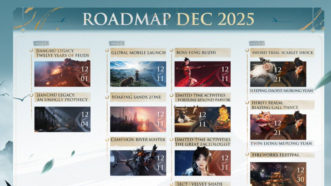 Where Winds Meet is already aligning with that rhythm. The early Season 1 schedule front‑loads foundational events and a first battle pass, then introduces more thematic activities such as Windtail Quest, One Leaf, One Life, and a cluster of December mini‑events tied to social play, sect releases, and New Year fireworks.