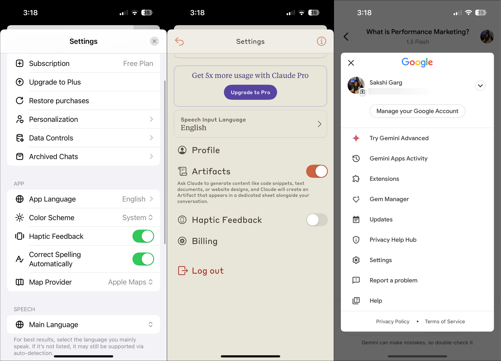 As you can see, ChatGPT, Claude, and Gemini, all have great mobile apps. Hence, the best AI app will depend on the needs of an individual. If you want better customization, a more polished layout, and access to a greater number of features with a free plan, ChatGPT is the way to go. Claude is ideal for more privacy-conscious users and people who want access to artifacts even on the go. However, if you want integration with apps like YouTube, Google Workspace, and unlimited voice mode even with the free plan, Gemini is the way to go.