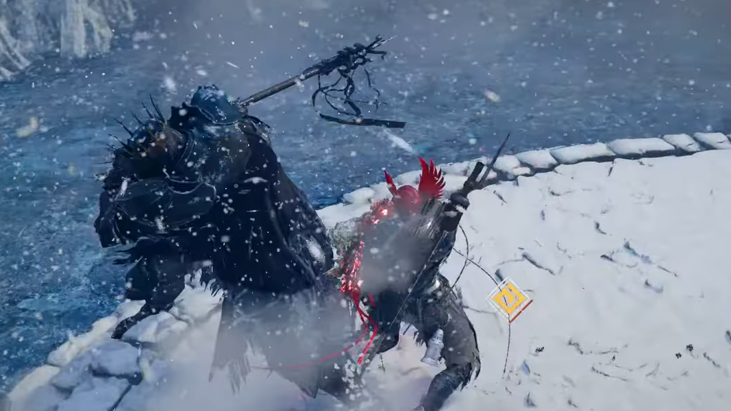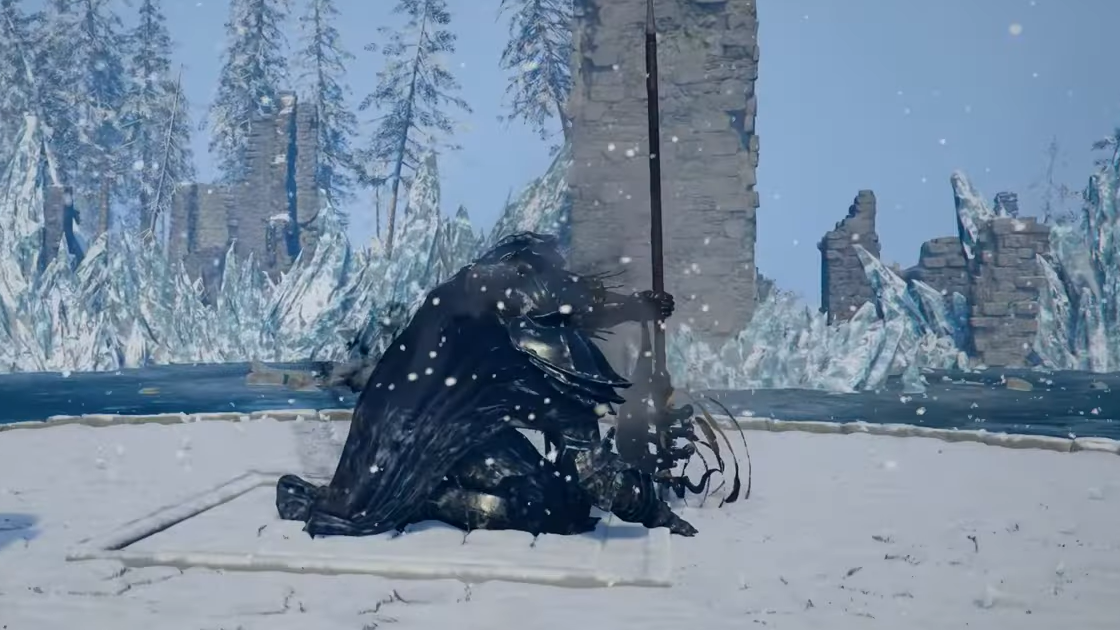 Beloth has roughly 13,000 HP, resists stagger, and hits hard enough to one-shot underprepared players with his frost halberd. He teleports across the arena often, so the fight is about reading wind-ups rather than chasing him.