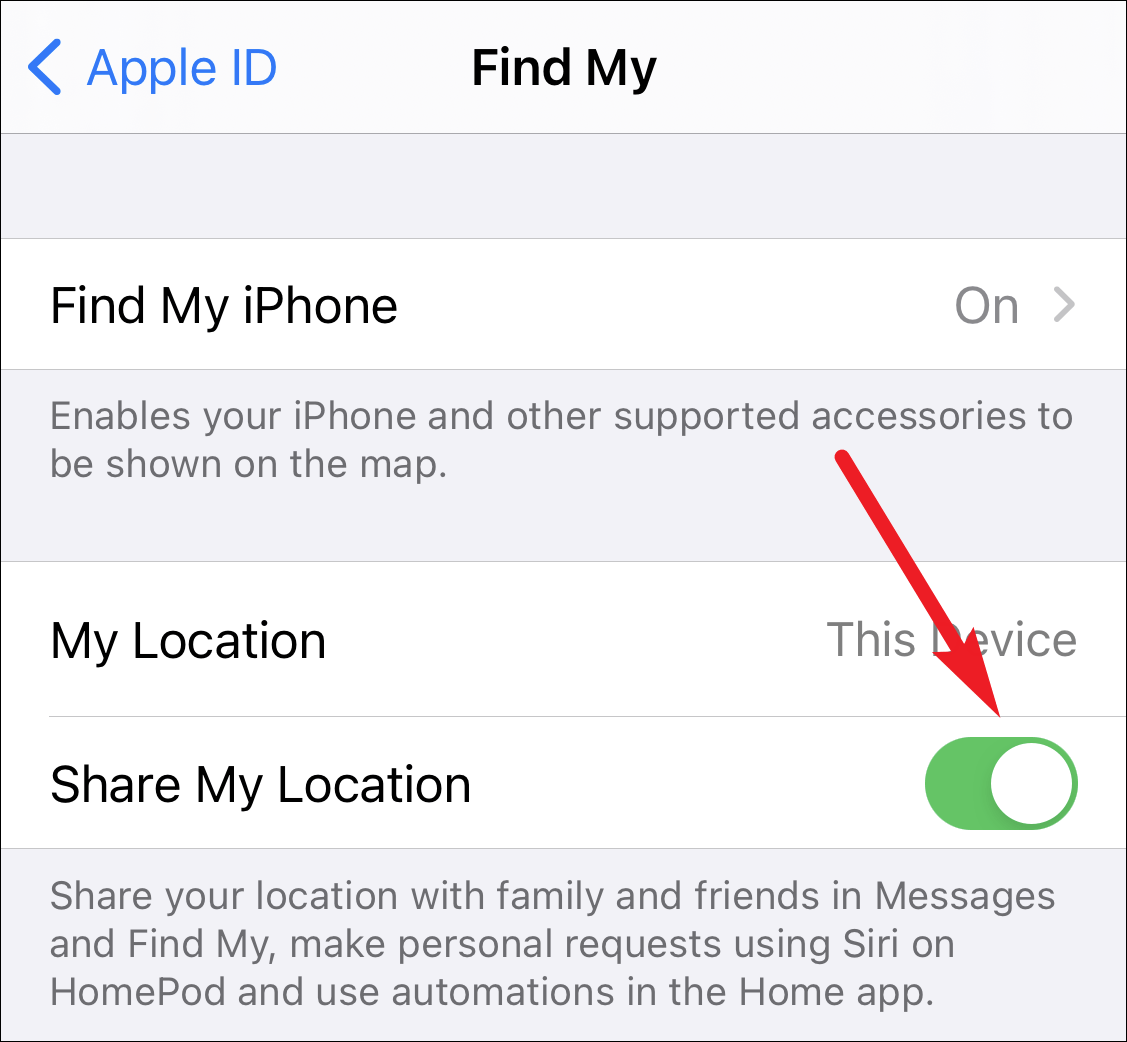 Then, turn on the toggle for 'Share My Location'. If Location Sharing is off for 'Find My', people with whom you're sharing your location in iMessage won't see it.