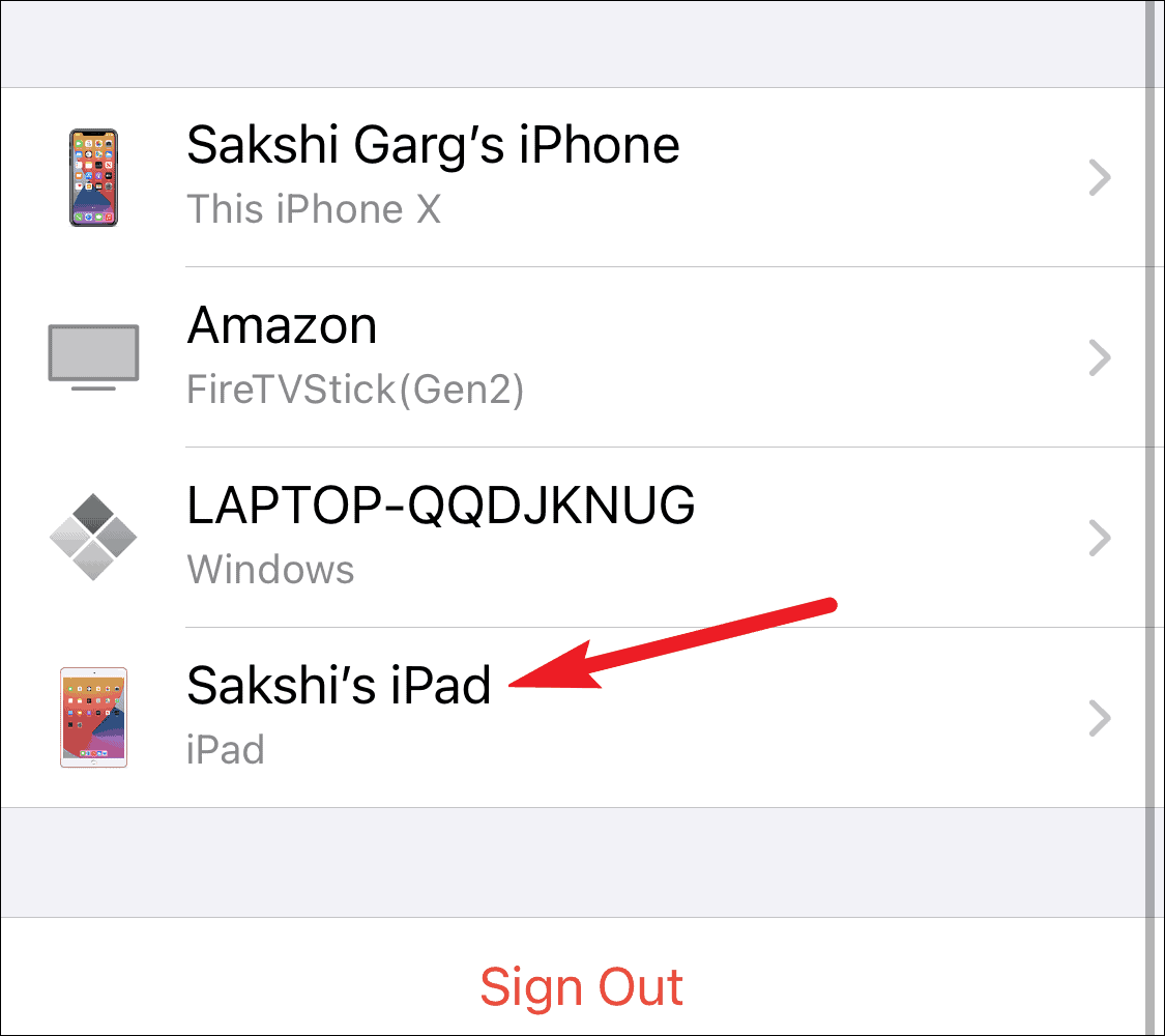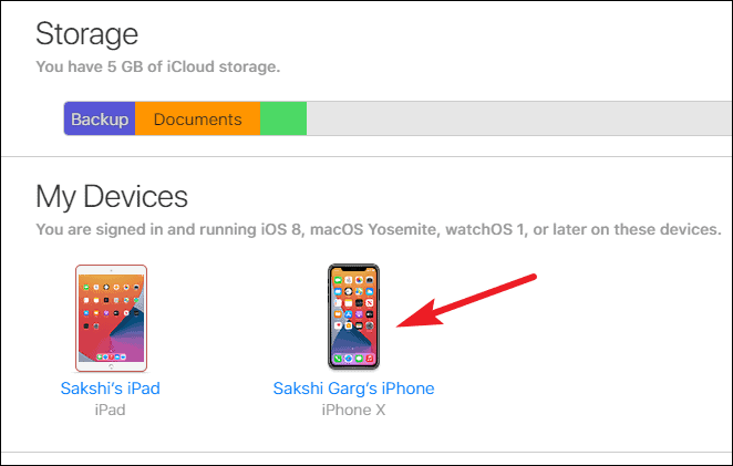 Your Apple ID details will also have all devices using your iCloud account. Your previous phone should be listed here too. Tap it to open it.