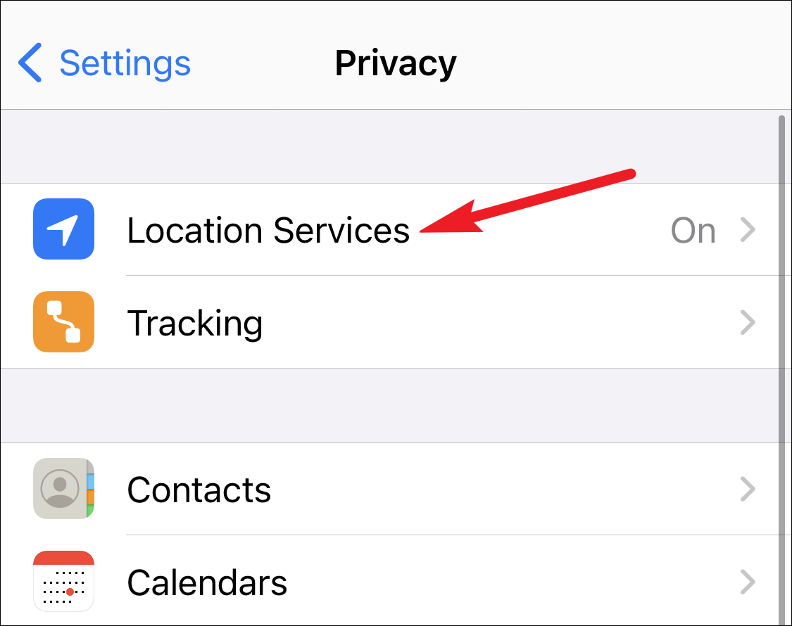 After removing the device, return to Settings on your iPhone and open Location Services from the 'Privacy' settings.