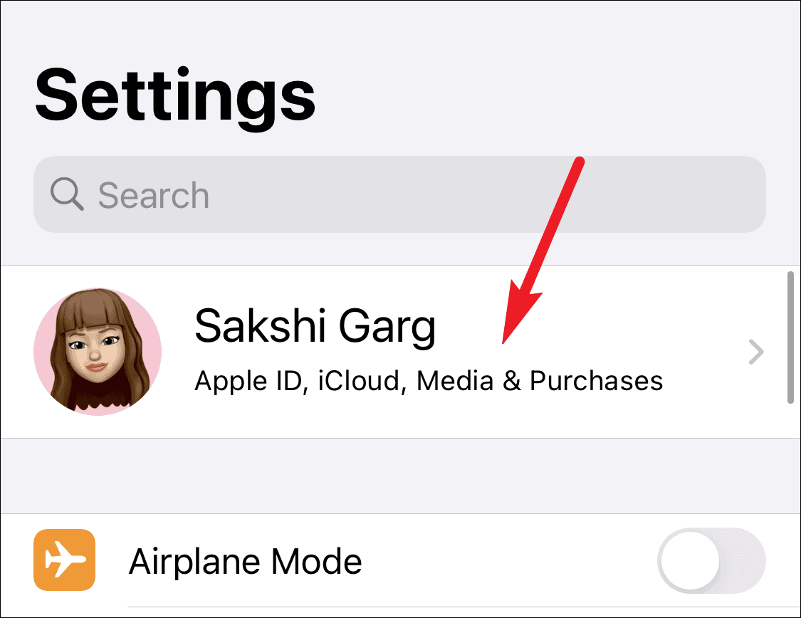 Luckily, you can quickly sort this mess out. Go to Settings from your phone and tap your Apple ID name card at the top.
