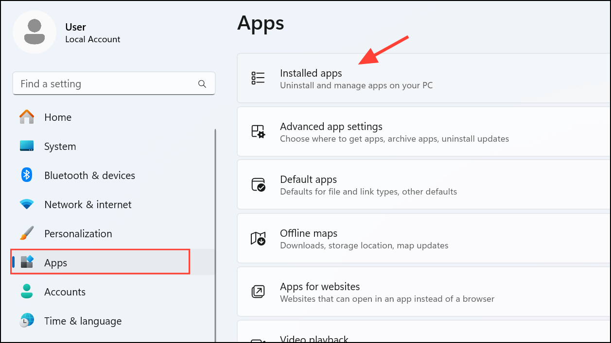 Step 1: Open Windows Settings (Win + I) and navigate to "Apps" > "Installed apps."
