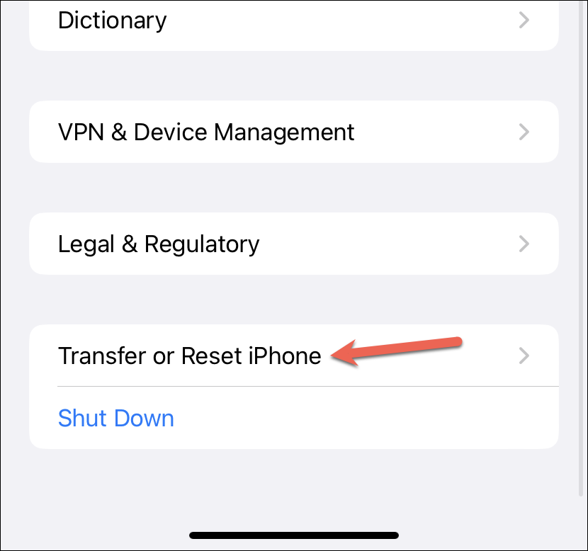 Step 2: Scroll down and tap on Transfer or Reset iPhone.