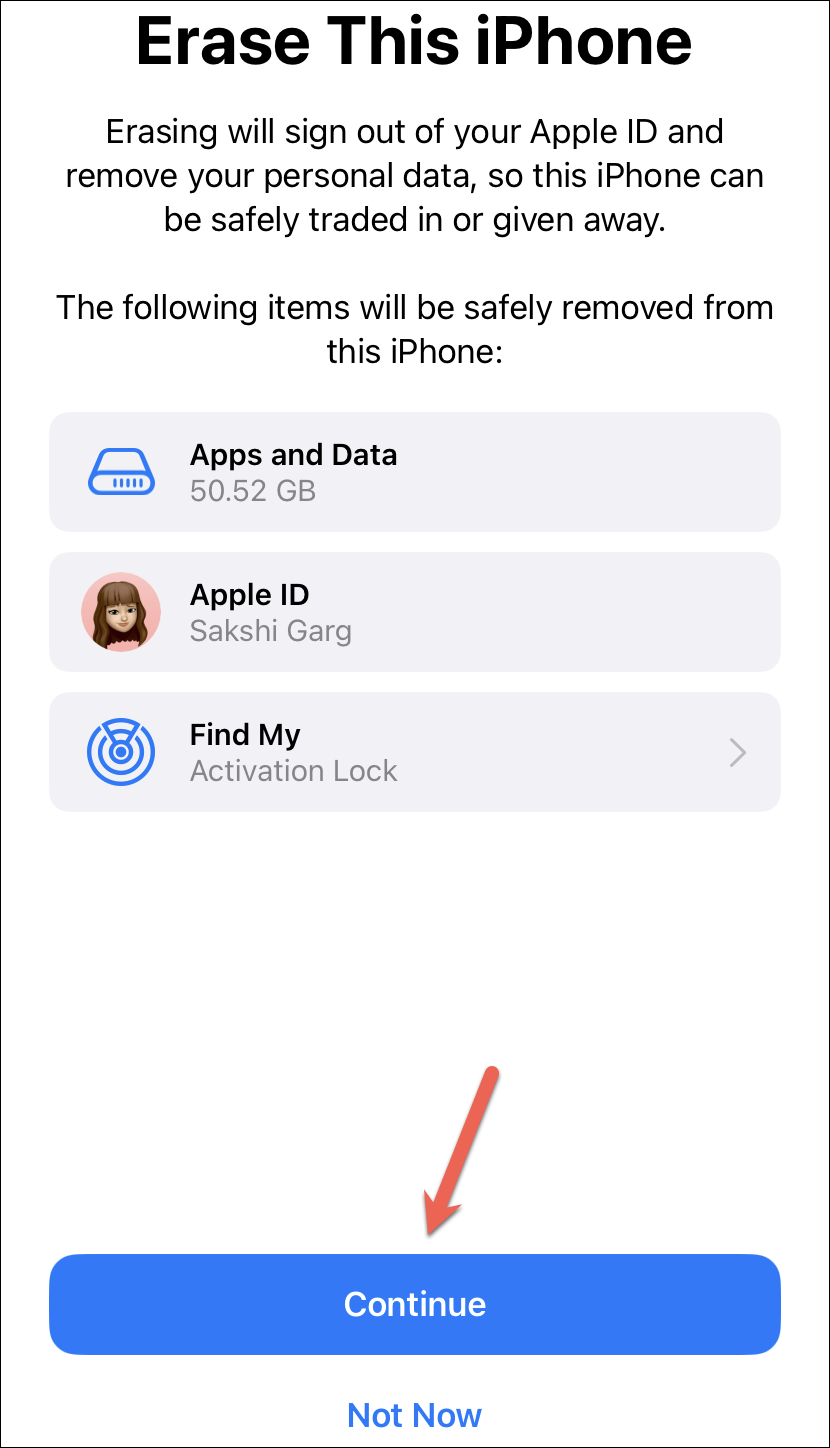 Step 4: Tap Continue and follow the on-screen instructions to complete the reset.