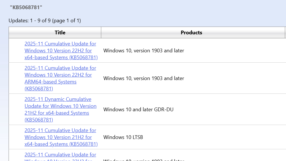 KB5068781 is the first cumulative security update delivered under Windows 10’s Extended Security Updates (ESU) program after the end of support. It installs on eligible devices via Windows Update and moves Windows 10 version 22H2 to build 19045.6575 (Windows 10 Enterprise LTSC 2021 moves to 19044.6575). Microsoft lists the build details and contents on its support page for the release.