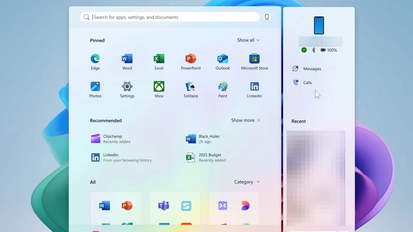 The Start menu gets its biggest refresh in Windows 11 to date. The “All” view is now integrated alongside Pinned and Recommended in a single, scrollable surface that adapts to your screen size.