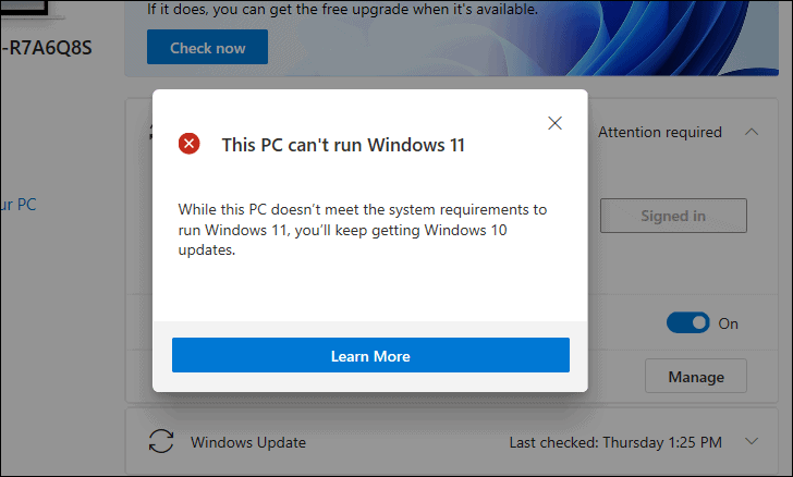 - The app will analyze your system to determine compatibility. If your PC is not compatible with Windows 11, you will receive a notification stating so.