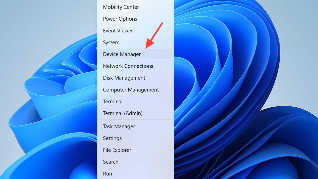 Press Windows + X and select Device Manager. This tool shows all hardware devices installed on your system.