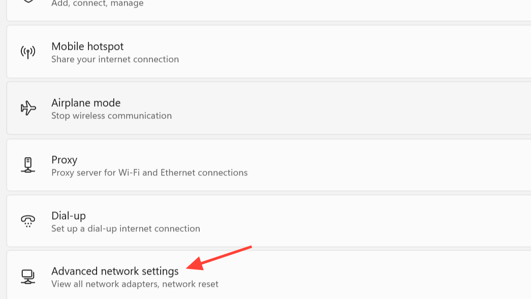 Open Settings with Windows + I, go to Network & internet, then open Advanced network settings. Scroll down and choose the option that resets network adapters and settings (labelled Network reset in many builds). Read the warning, then start the reset.