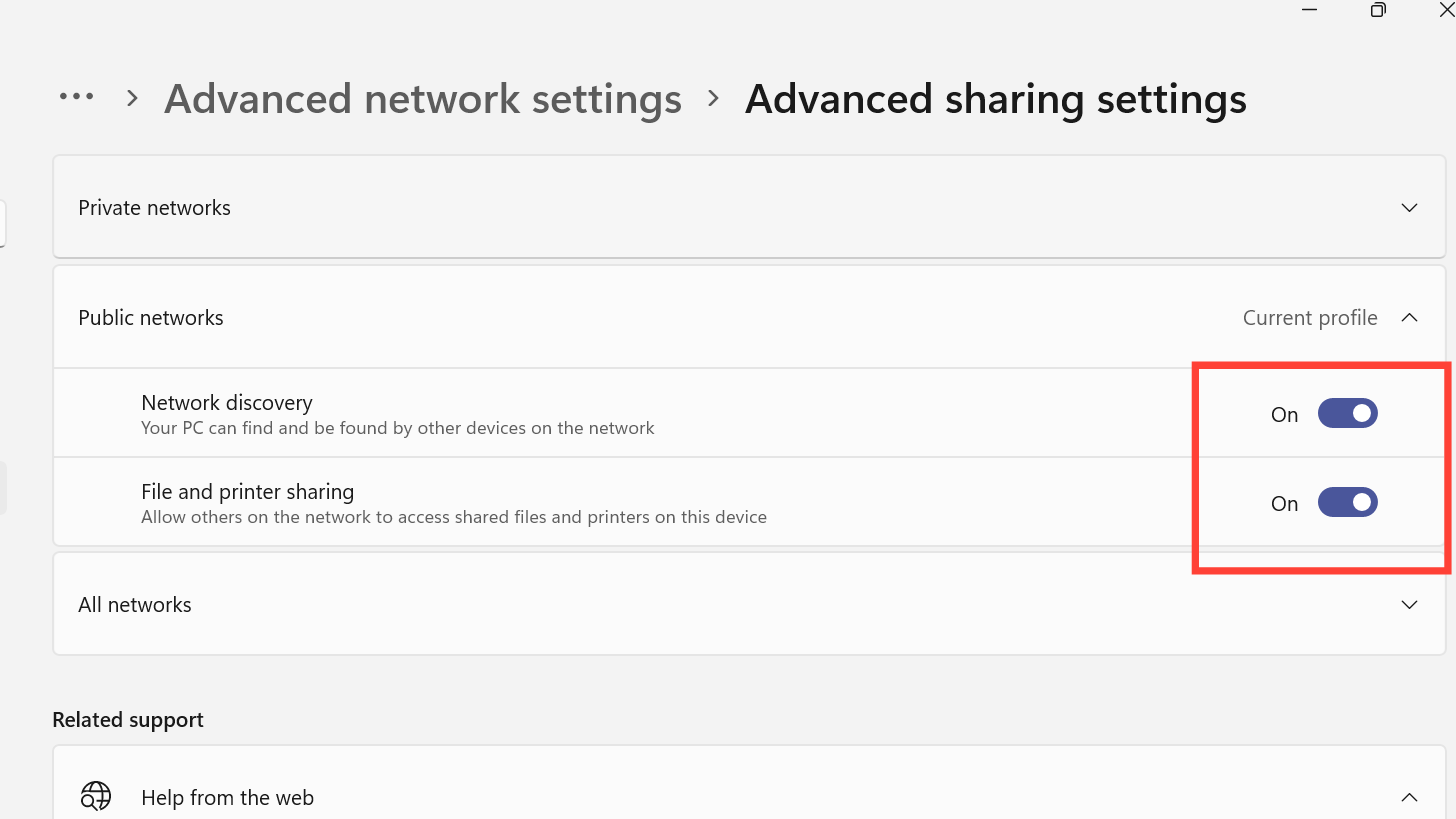 Turn on network discovery and file sharing in Windows 11