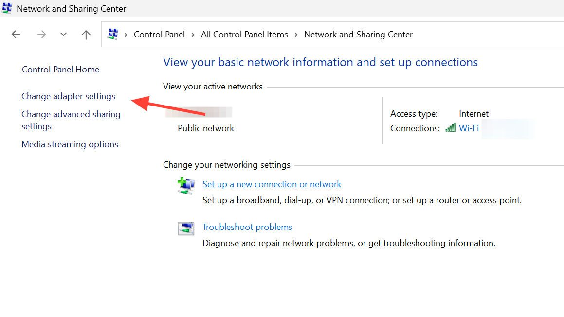 Go to Control Panel, select Network and Internet, then choose Network and Sharing Center. On the left, click Change adapter settings. This shows each network adapter on your system, such as Wi‑Fi or Ethernet.