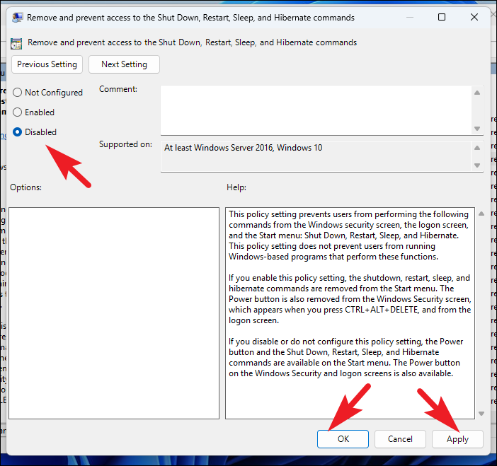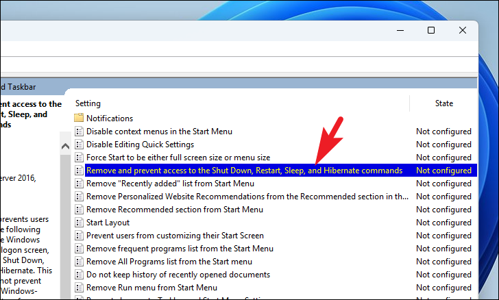 Then, locate and double-click on the 'Remove and prevent access to the Shut Down, Restart, Sleep, and Hibernate commands' policy.