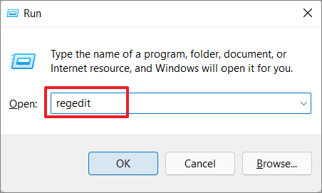 First, open the Run command box by typing shortcut keys Win+R. Then, type regedit and hit Enter or click ‘OK’.