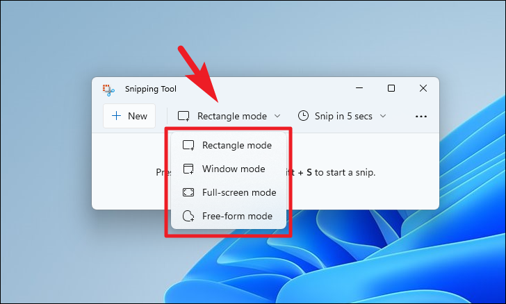 After that, click on the ‘Rectangle mode’ button to reveal the context menu, then choose your desired mode of a screenshot.