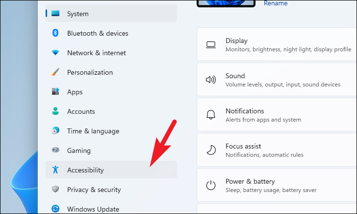 Then, click on the ‘Accessibility’ tab present on the left sidebar to continue.