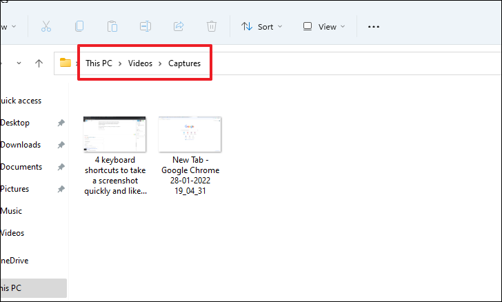 Alternatively, you can also locate the captured screenshot in the below-mentioned directory of your Windows 11 machine.