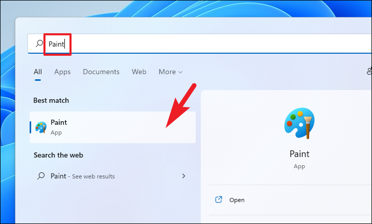 To take a fullscreen screenshot and copy it to the clipboard, press the PrtScr/PrtSc key on your keyboard. Then head to the Start Menu and type Paint to search for the app. Next, from the search results, click on the ‘Paint’ app tile to open the app.