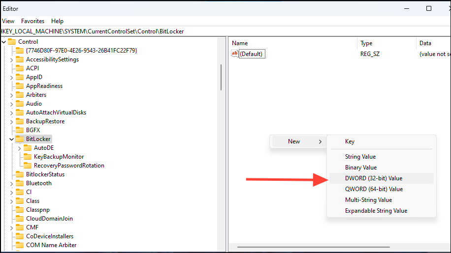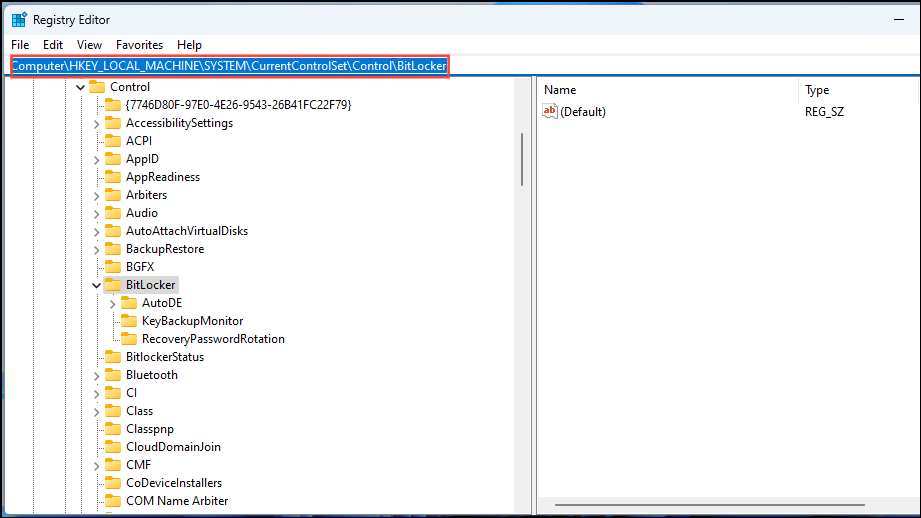 HKEY_LOCAL_MACHINE\SYSTEM\CurrentControlSet\Control\BitLocker