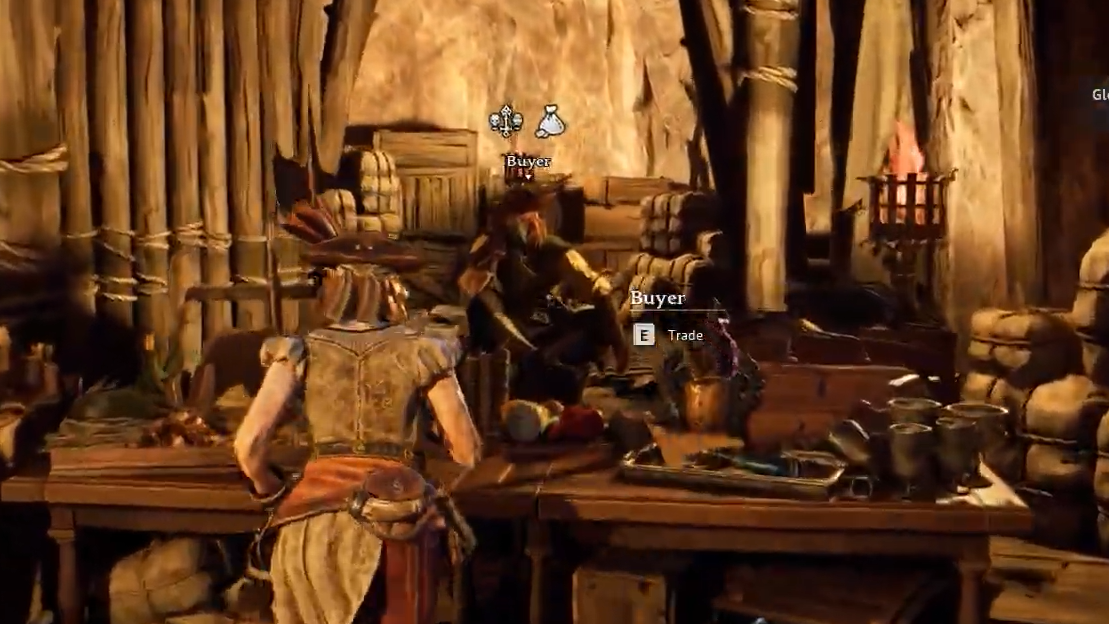 A second buyer operates out of the central tent at the Rogue Buccaneers Main Base. The quest that reveals this location triggers around the same time as the Smugglers quest, typically while you have several active objectives in the Buccaneers chain. This buyer accepts a different category of goods entirely — combat salvage and hunting trophies.