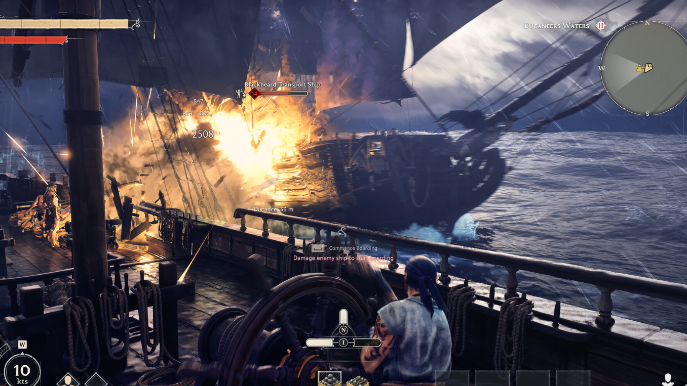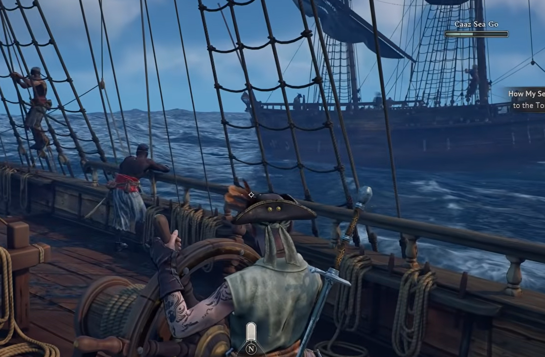 Several strategies work here. You can soften the enemies with your ship's cannons before boarding, which thins the group significantly. Alternatively, kiting them around the deck in a loop lets you pick off stragglers one at a time. If combat feels genuinely impossible at your current gear level, a more aggressive approach is to sprint below deck, grab the Provisions, and immediately flee. The quest will still progress even if you don't kill every enemy. Lowering the difficulty setting to Easy is another option if the encounter feels overtuned.