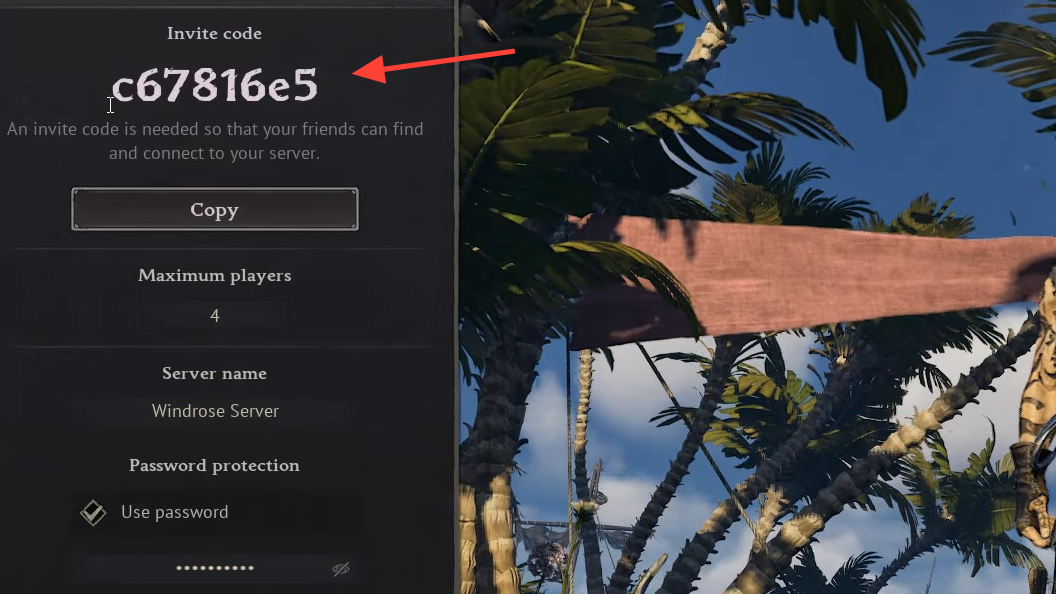 Step 3: Optionally, set a server name and password to prevent uninvited players from joining. There is currently no public server browser, so players can only join worlds when someone shares the invite code directly.