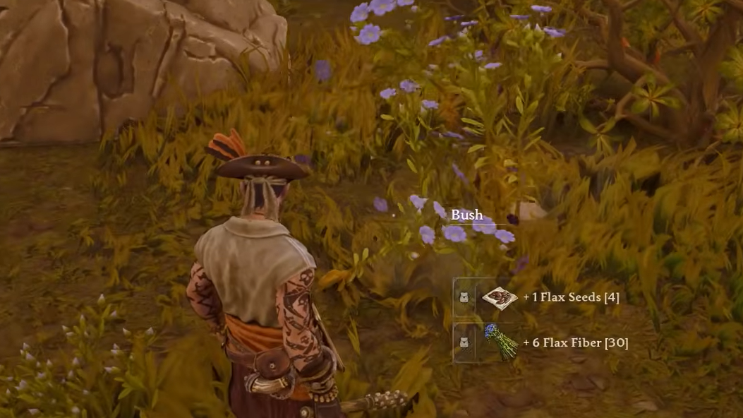 Flax Fiber is the most tedious key discovery to stockpile in the wild. Plant Flax Seedlings in Fertile Soil at your base as soon as you have a Foothills Patch, since Linen Fabric feeds into gear, decorations, and the Brigantine ship.