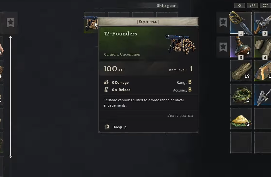 Step 1: Go to the Wharf, open Manage Ship, and move the cannon back into your inventory. The slot on the ship will empty out.