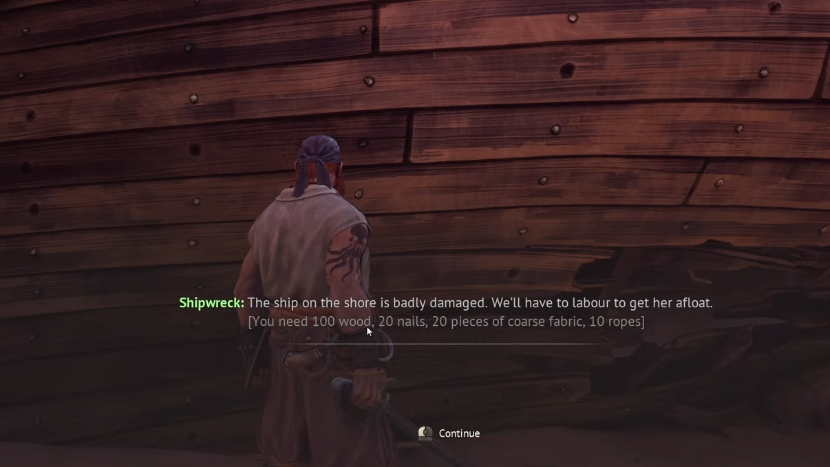 Quick answer: Complete the Rescuing the Crew quest first, then sail to the second island, locate all three shipwrecks, and repair the one in the middle of the island using 100 Wood, 20 Nails, 20 Coarse Fabric, and 10 Ropes. After repairing it, return to the first island and speak with Doctor Galen to finish the quest.
