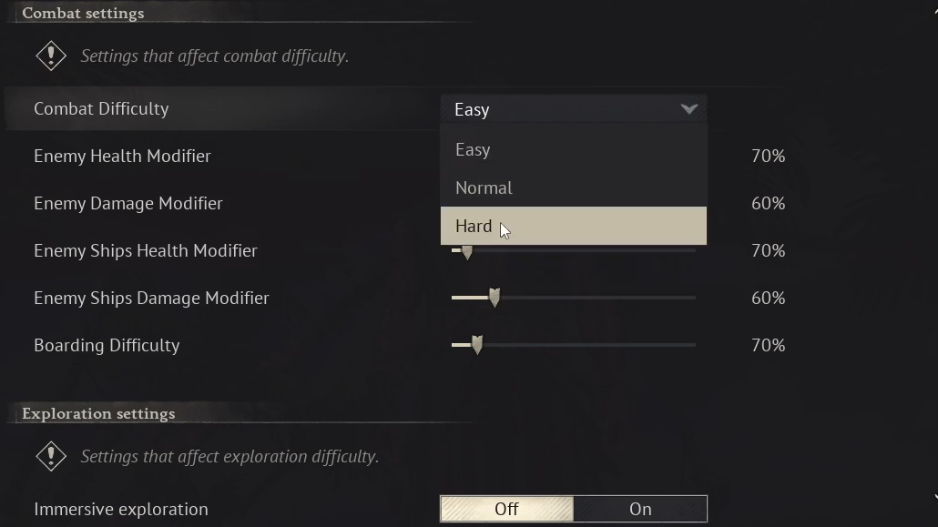 The multiplier ranges give you meaningful control over combat pacing. MobHealthMultiplier and MobDamageMultiplier accept values between 0.2 and 5.0. Ship stats have their own multipliers with slightly different ranges. CombatDifficulty is a separate string field set to Easy, Normal, or Hard. Editing any individual value flips WorldPresetType to Custom automatically.