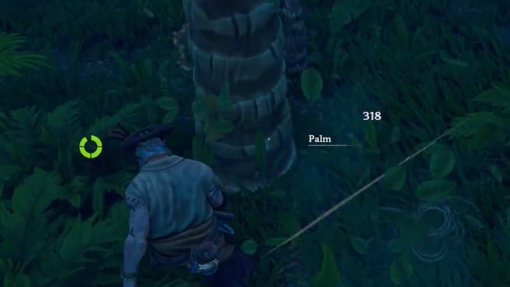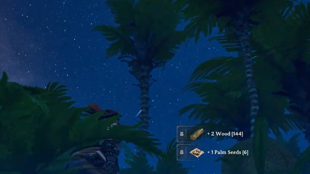 - Your axe tier is too low to fully fell the larger inland palms, so you only ever collect wood from partial chops.