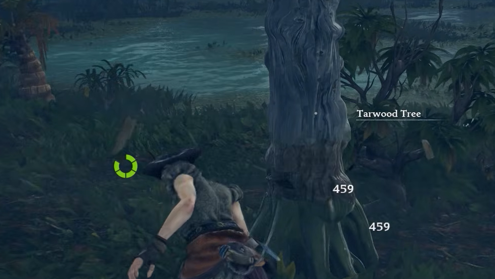 Step 2: In the swamp, locate Tarwood Trees. They have a darker, distinct silhouette compared to regular trees in the area, and chopping one yields Tar directly, no secondary processing required.
