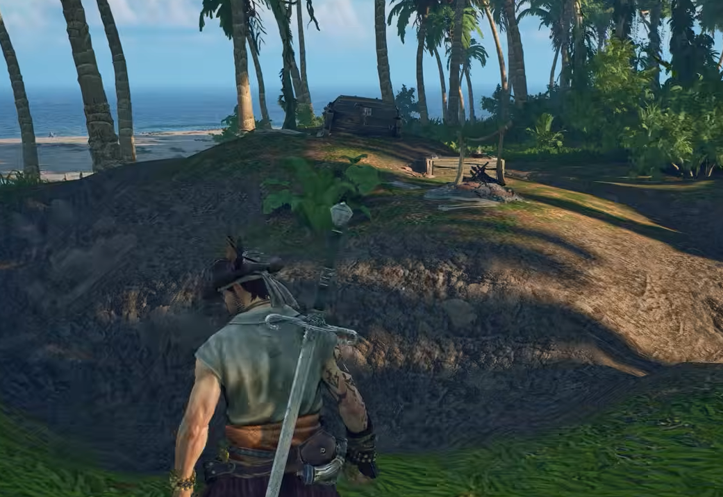 The second chest at a Traveler's Camp in Windrose is buried at the base of a nearby tree marked with a strip of red cloth. It is not inside the camp itself, and you cannot open it without a Shovel. The starter-island camp in the Coastal Jungle is the clearest example, but the same pattern repeats at every Traveler's Camp whose map icon reads 1/2.