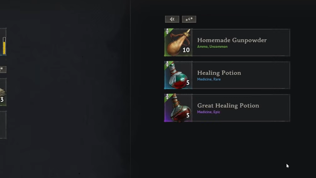 The healing stack is enough to carry most players through the early boss encounters on the starter island, and the gunpowder feeds directly into firearm crafting.