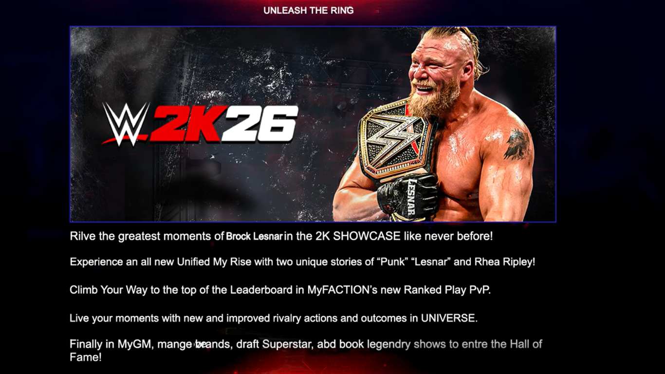 This year’s Showcase star is CM Punk, who also serves as the cover athlete for WWE 2K26. Punk’s role marks a return to the role of storyline focal point, as he previously headlined the Showcase in past titles.