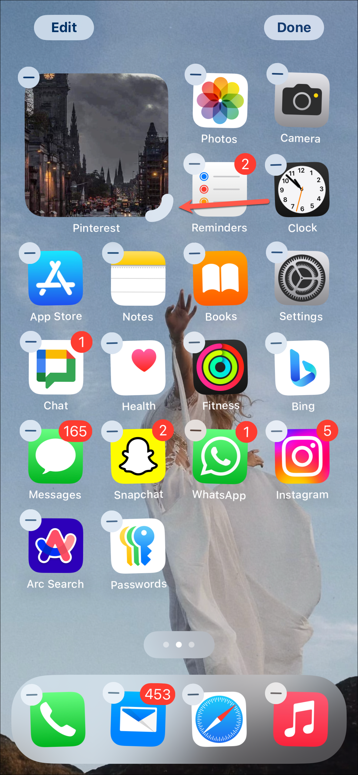 - Tap and hold anywhere on the Home Screen until all the apps start to jiggle.
