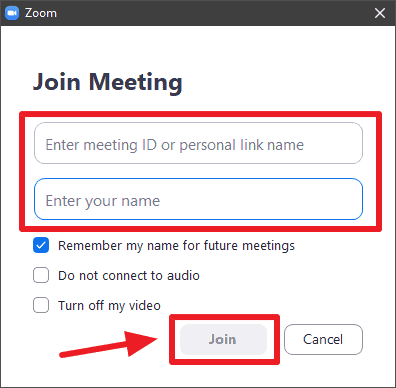 A ‘Join Meeting’ window will open, enter the ‘meeting ID’ and your name in the respective fields on the window, and then click the ‘Join’ button.