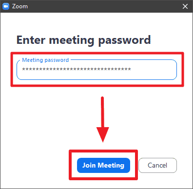 Step 6: If prompted for a meeting password, enter the password provided in the invitation and click 'Join Meeting'.